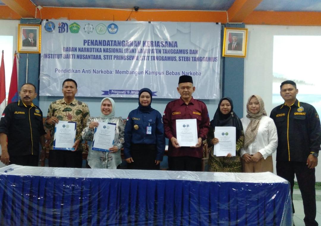 Penandatanganan Memorandum of Understanding (MoU) antara BNNK Tanggamus dan STEBI Tanggamus itu berlangsung di Perguruan Tinggi Institut Bakti Nusantara (IBN) Pringsewu, Lampung, Kamis 16 Januari 2025.