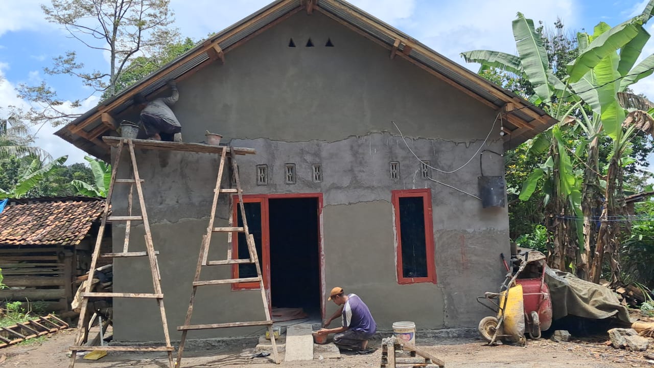 Rumah yang sebelumnya tidak layak huni kini telah berdiri tegak dengan bata merah dan segera memasuki tahap finishing sebelum diserahkan secara resmi kepada pemiliknya.