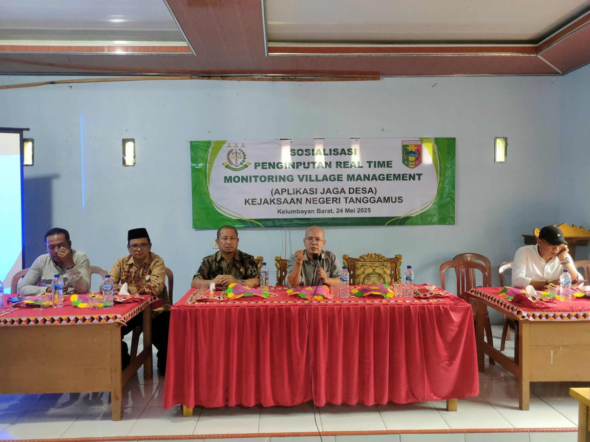 TANGGAMUS – Kejaksaan Negeri (Kejari) Tanggamus melalui Seksi Intelijen melakukan Sosialisasi Penginputan Real Time Monitoring Village Management (Aplikasi Jaga Desa) Sabtu 24 Mei 2025.