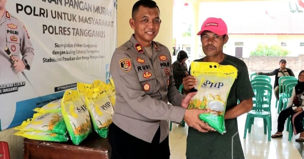 “Kaitan dengan penjualan beras di pasar SPHP dari Bulog, kami diperintahkan untuk membantu melaksanakan penjualan beras premium harga medium. Kami menjualnya seharga Rp11.500 per kilogram dari Bulog,” kata Iptu Rudi mewakili Kapolres Tanggamus AKBP Rahmad Sujatmiko, S.I.K., M.H.