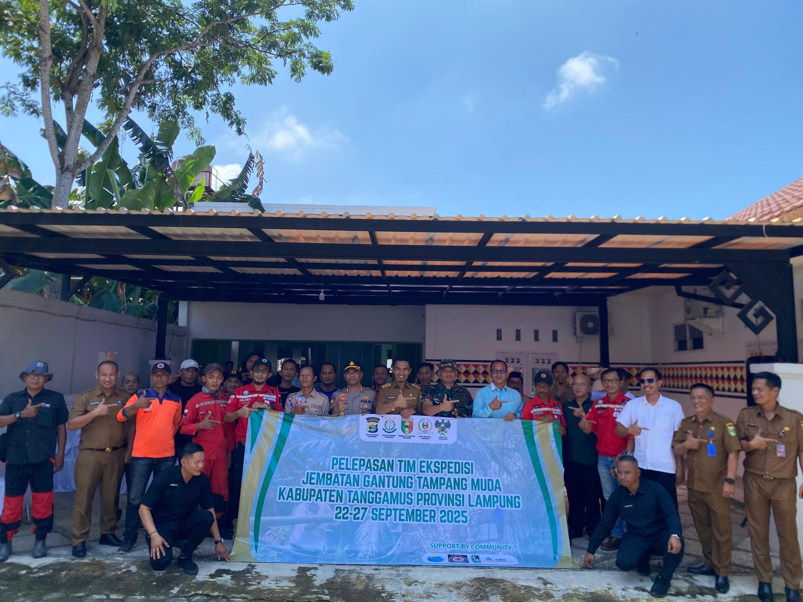 TANGGAMUS – Pemerintah Kabupaten Tanggamus secara resmi melepas Ekspedisi Jembatan Gantung Tampang Muda, Senin (22/9/2025).
